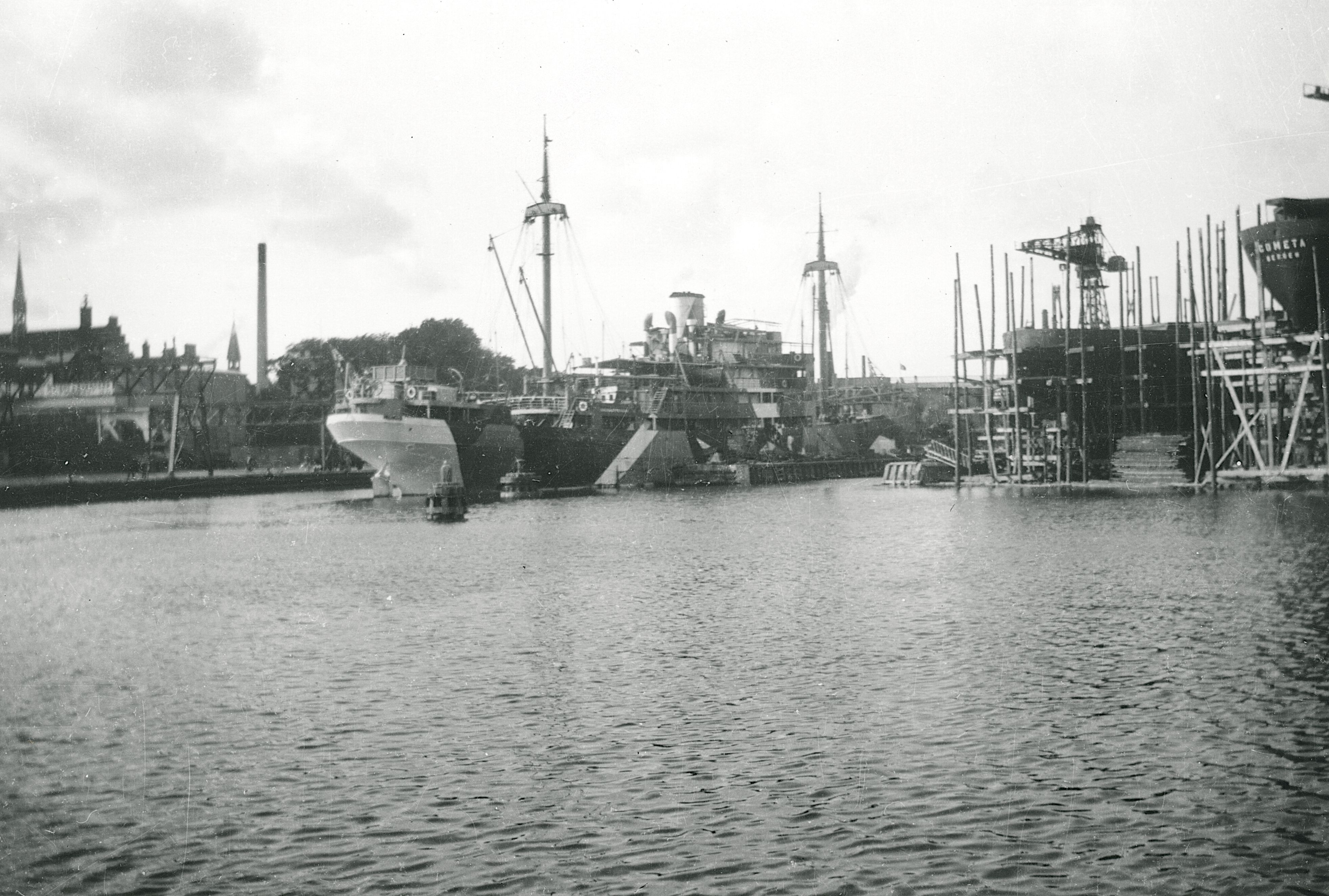 Maskingenkendt tekst fra fotokuvert: Tyske skibe i Helsingør havn