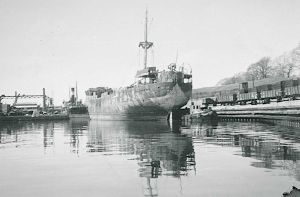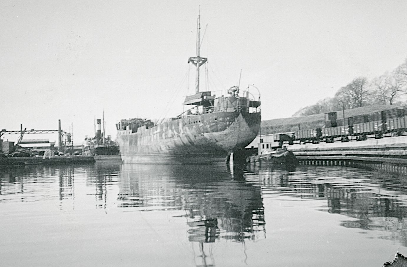 Maskingenkendt tekst fra fotokuvert: Tysk Ødelagt Tankskib, på Helsingør Skibsværft.