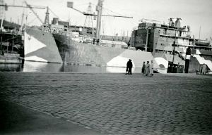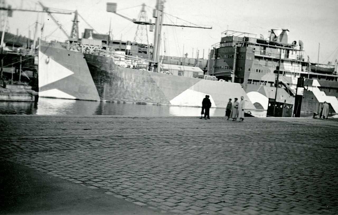 Maskingenkendt tekst fra fotokuvert: Helsingør. Stort tysk skib i Havnen.