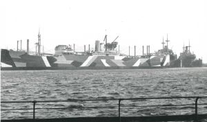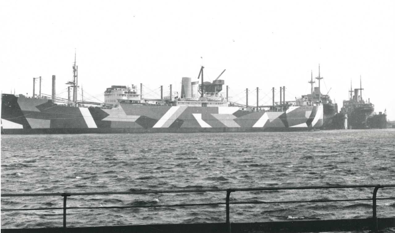 Maskingenkendt tekst fra fotokuvert: Skibe i Kbhvns Havn, det forreste er kamufleret og sandsynligvis tysk.