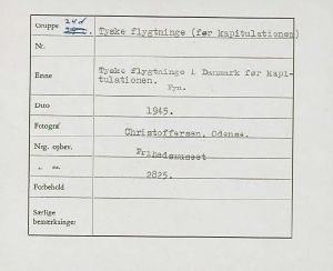 Maskingenkendt tekst fra fotokuvert: Tyske flygtninge i Danmark før kapitulationen. Fyn.