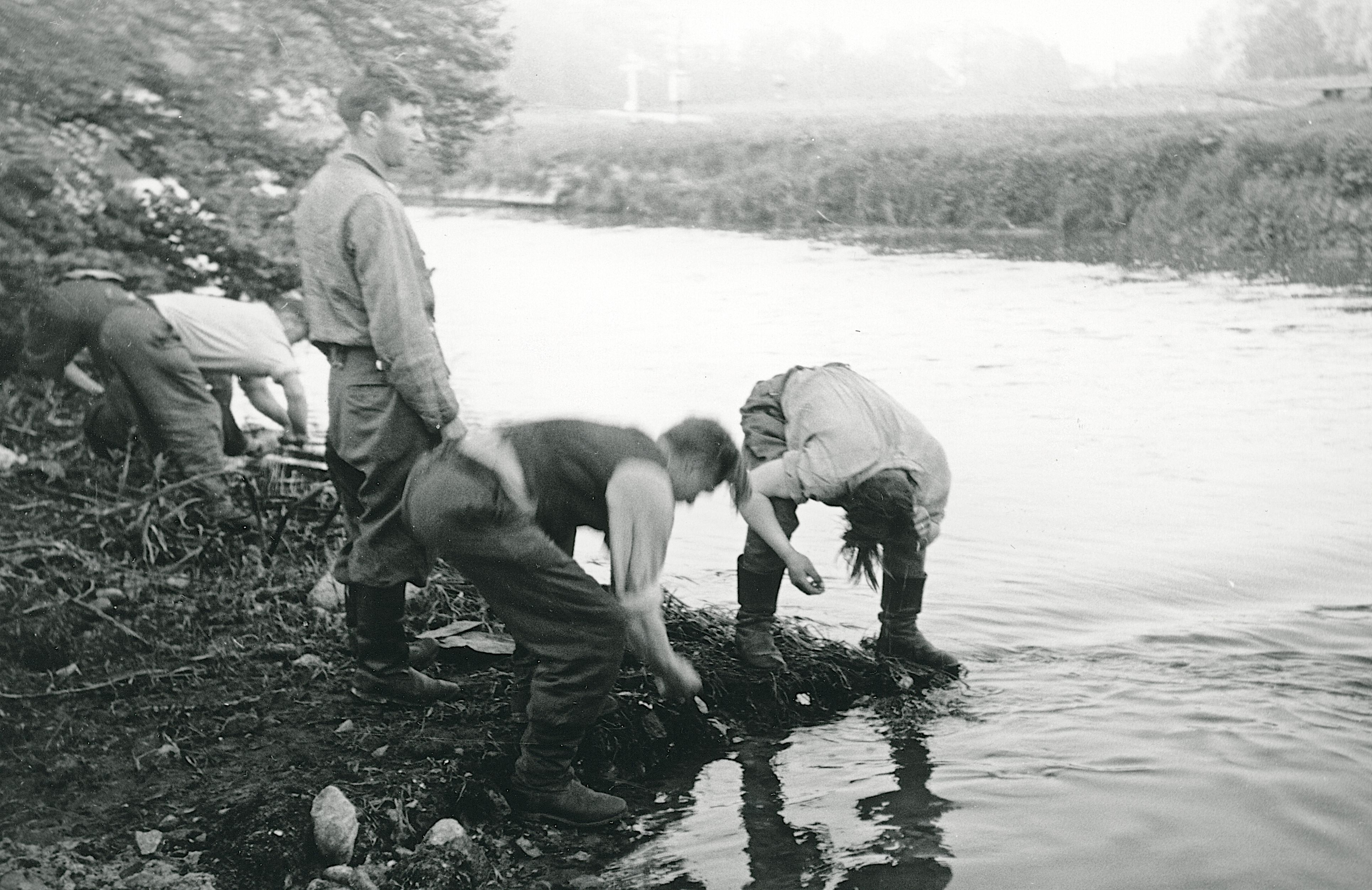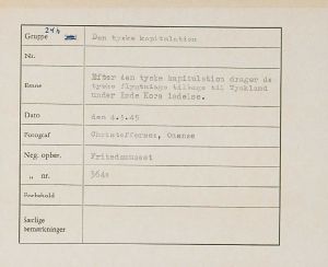Maskingenkendt tekst fra fotokuvert: Efter den tyske kapitulation drager de tyske flygtninge tilbage til Tyskland under Røde Kors ledelse.