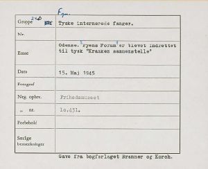 Maskingenkendt tekst fra fotokuvert: Odense. Vyens Forumer blevet indrettet til tysk "Kranken sammenstelle"