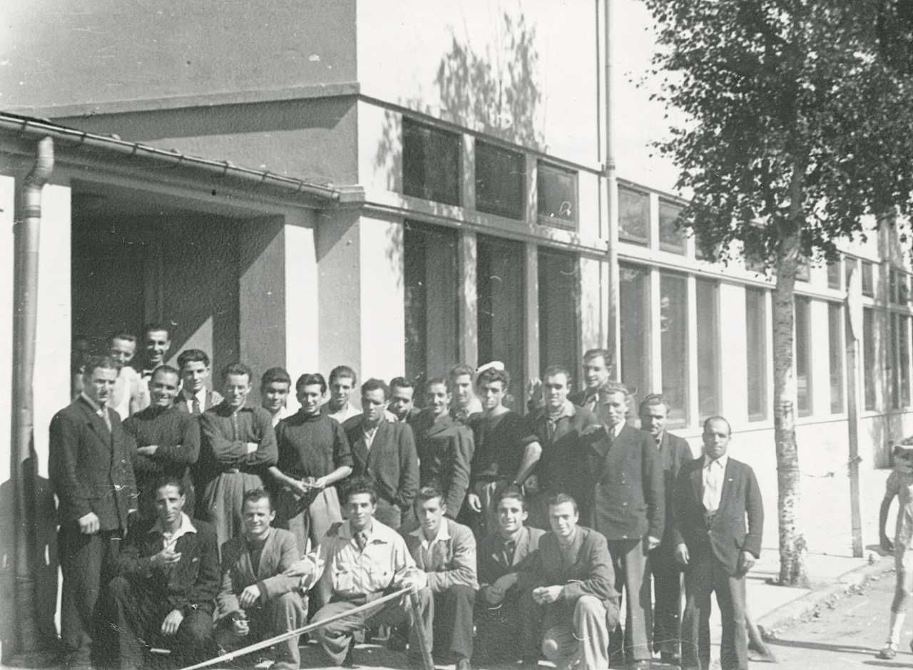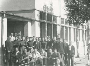 Maskingenkendt tekst fra fotokuvert: Italienere udenfor Hosenhaven i Odense.