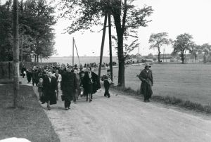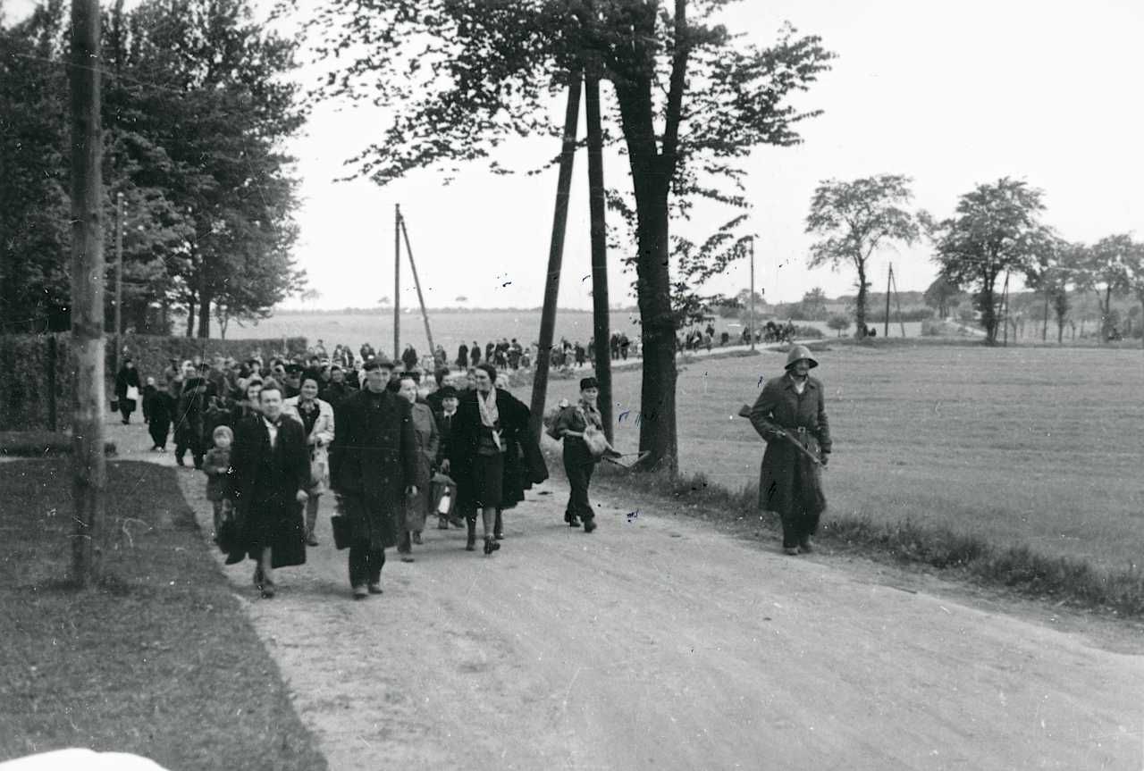 Tyske flygtninge fra skibe i Københavns Frihavn overføres - under bevogtning af frihedskæmpere - fra Lillerød Station til Sandholmlejren