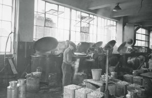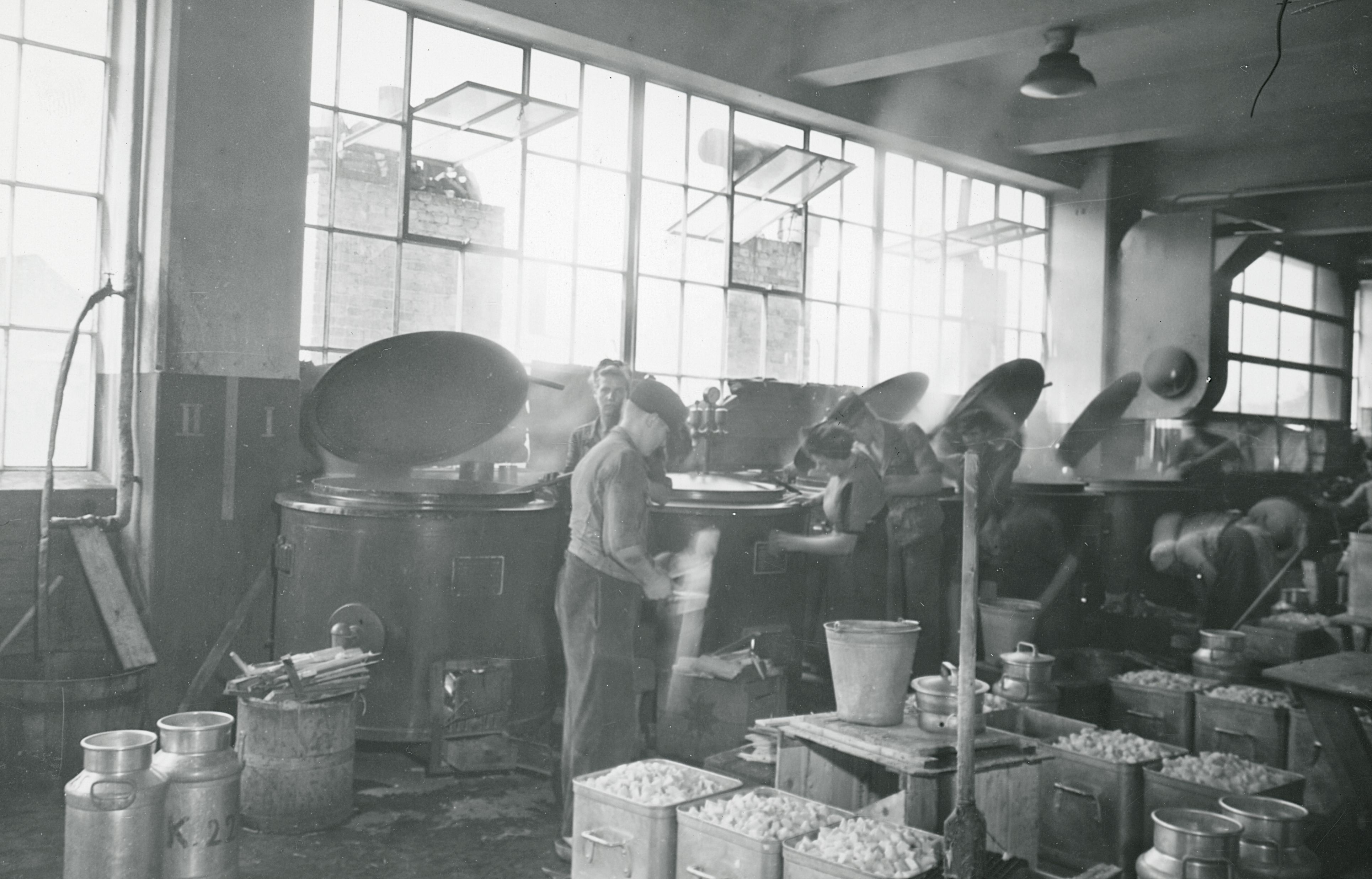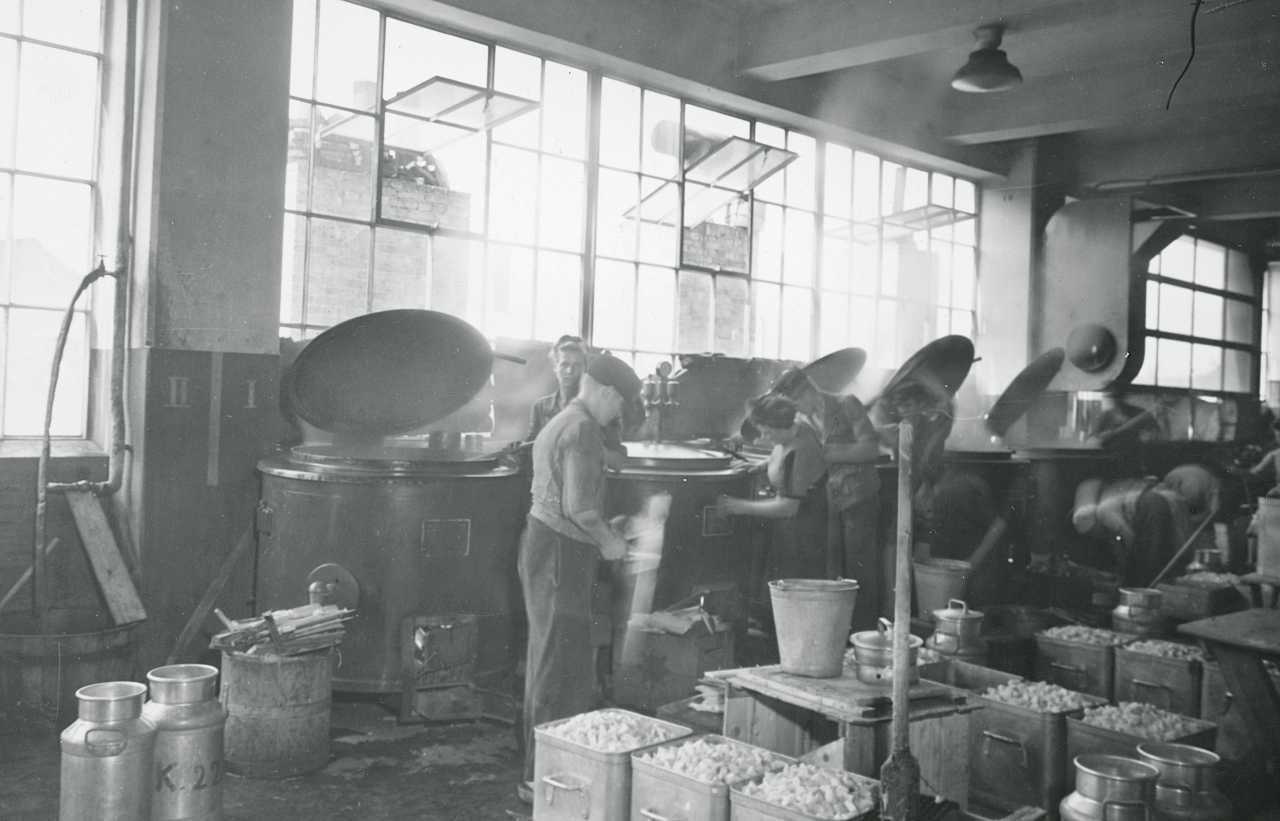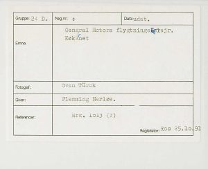 Maskingenkendt tekst fra fotokuvert: General Motors flygtningelejr. Køkknet