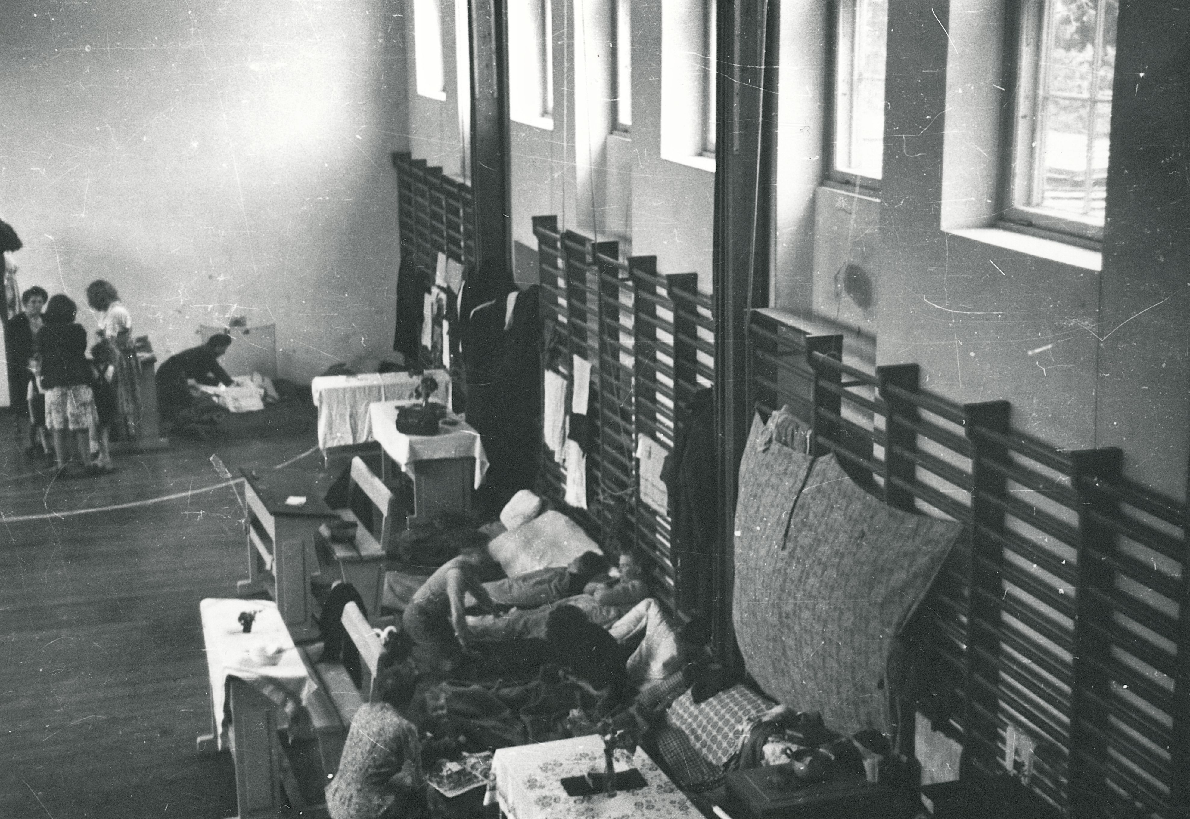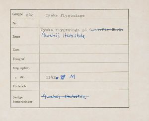 Maskingenkendt tekst fra fotokuvert: Tyske flygtninge, General Motors Fabrik.