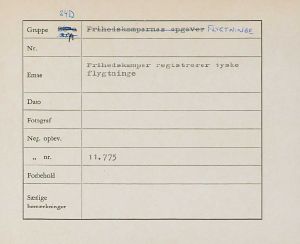Maskingenkendt tekst fra fotokuvert: Frihedskæmper registrerer tyske flygtninge