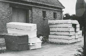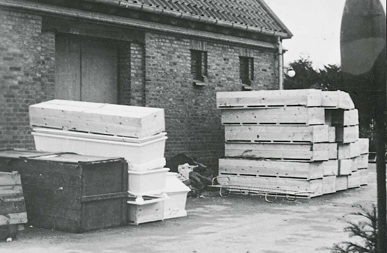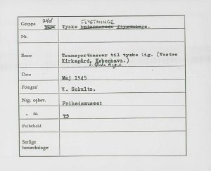 Maskingenkendt tekst fra fotokuvert: Transportkasser til tyske lig. (Vestre Kirkegård. København.)