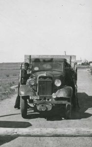 Maskingenkendt tekst fra fotokuvert: Ind- og udkørende biler undersøges her. Hanstholm.