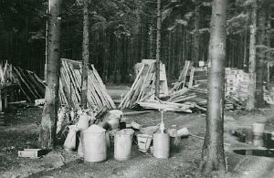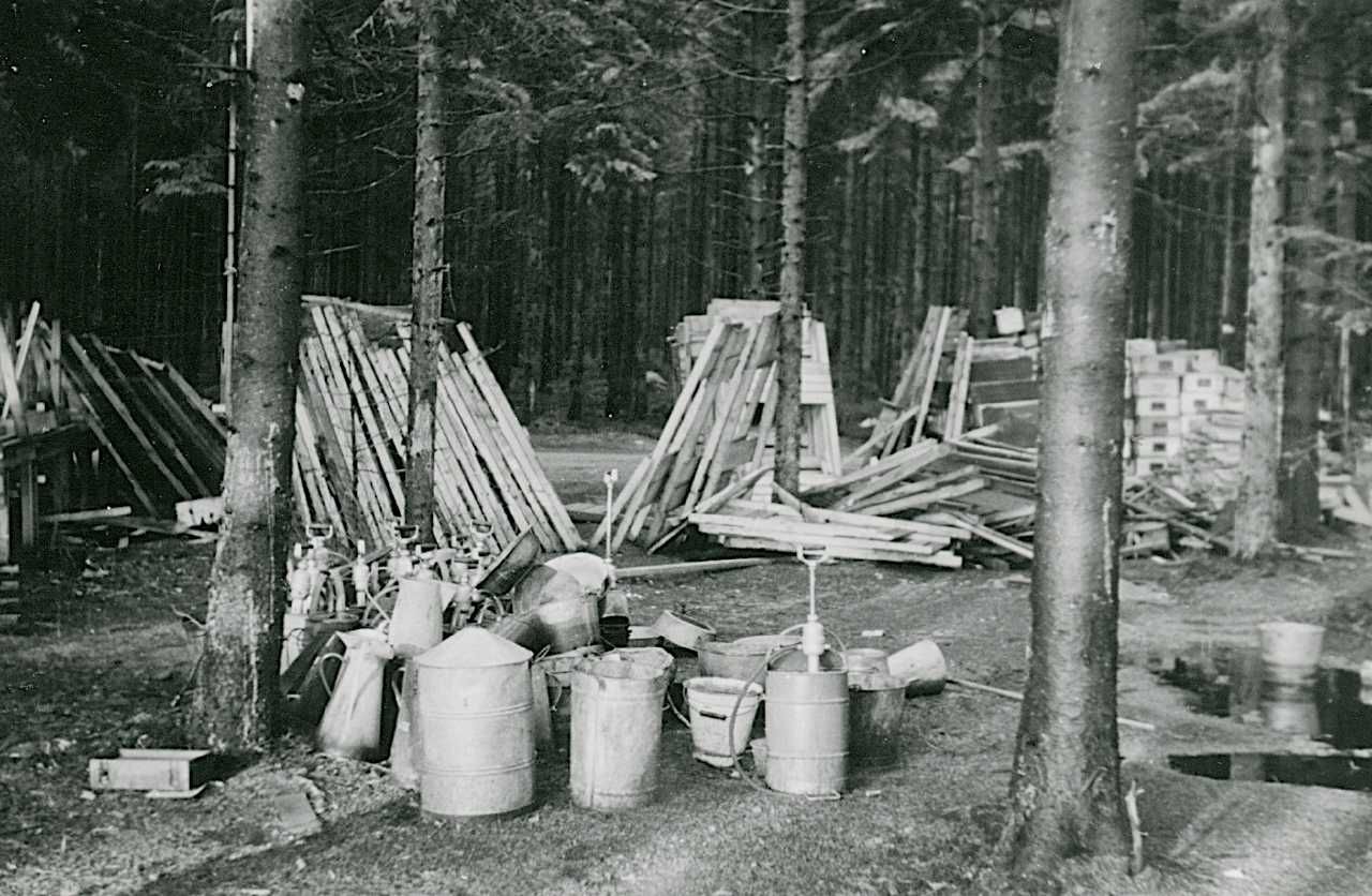 Maskingenkendt tekst fra fotokuvert: Bunkers, der sprænges, brandskab og alarm, m.m.