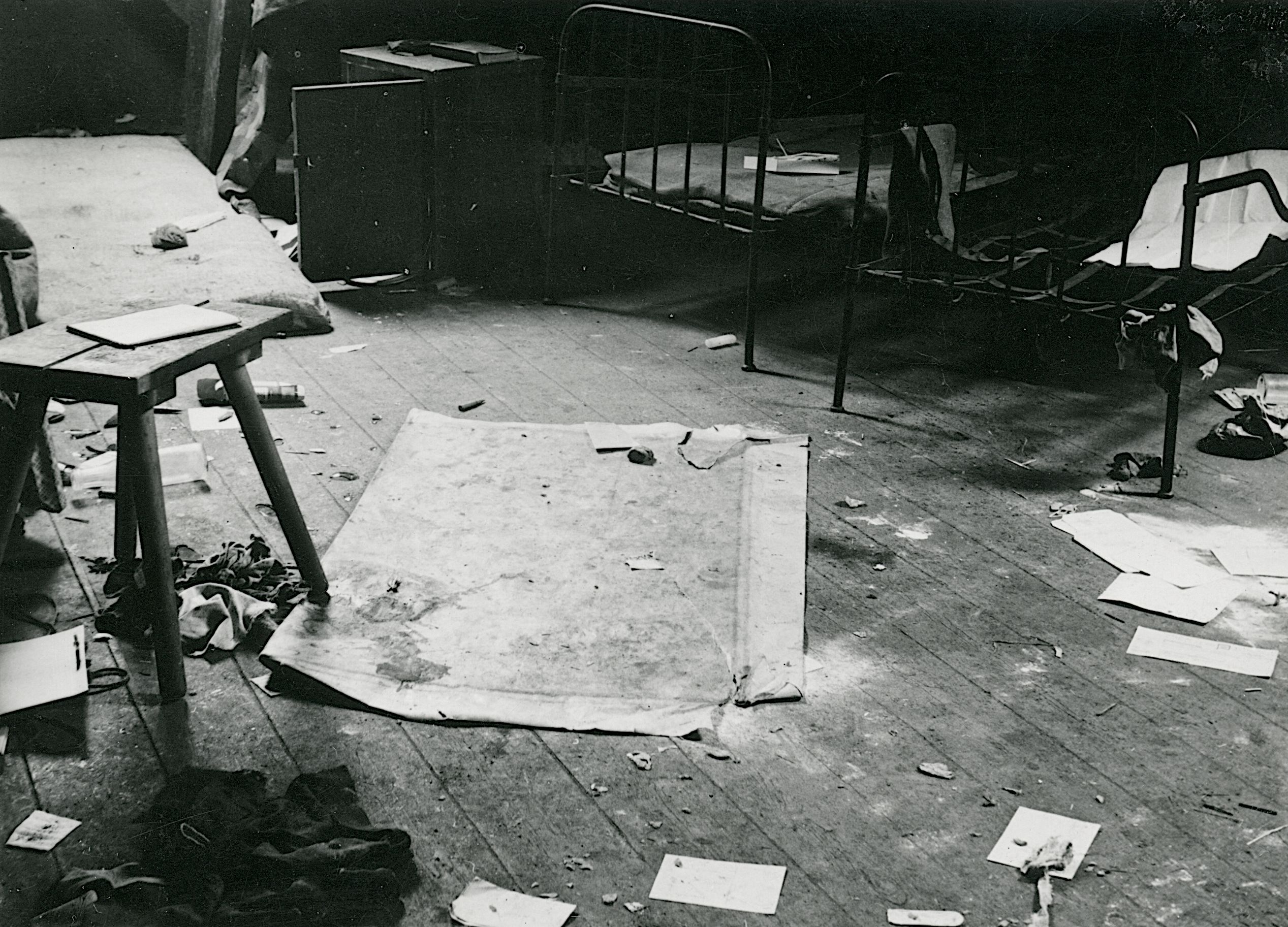 Maskingenkendt tekst fra fotokuvert: Aarhus. Kasernen med tyske efterladenskaber efter kap.
