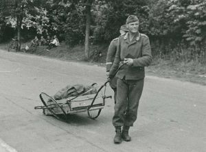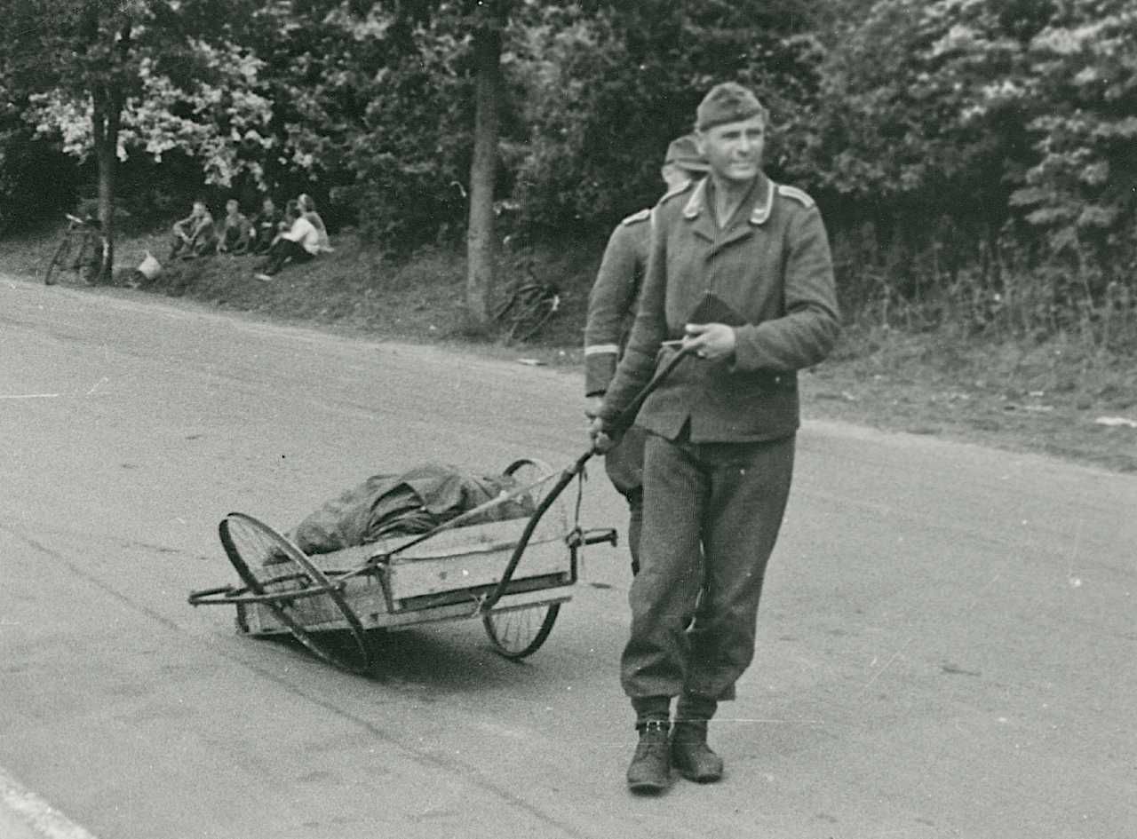 Maskingenkendt tekst fra fotokuvert: Tyskere på vej ud af Danmark, her ved Kruså.
