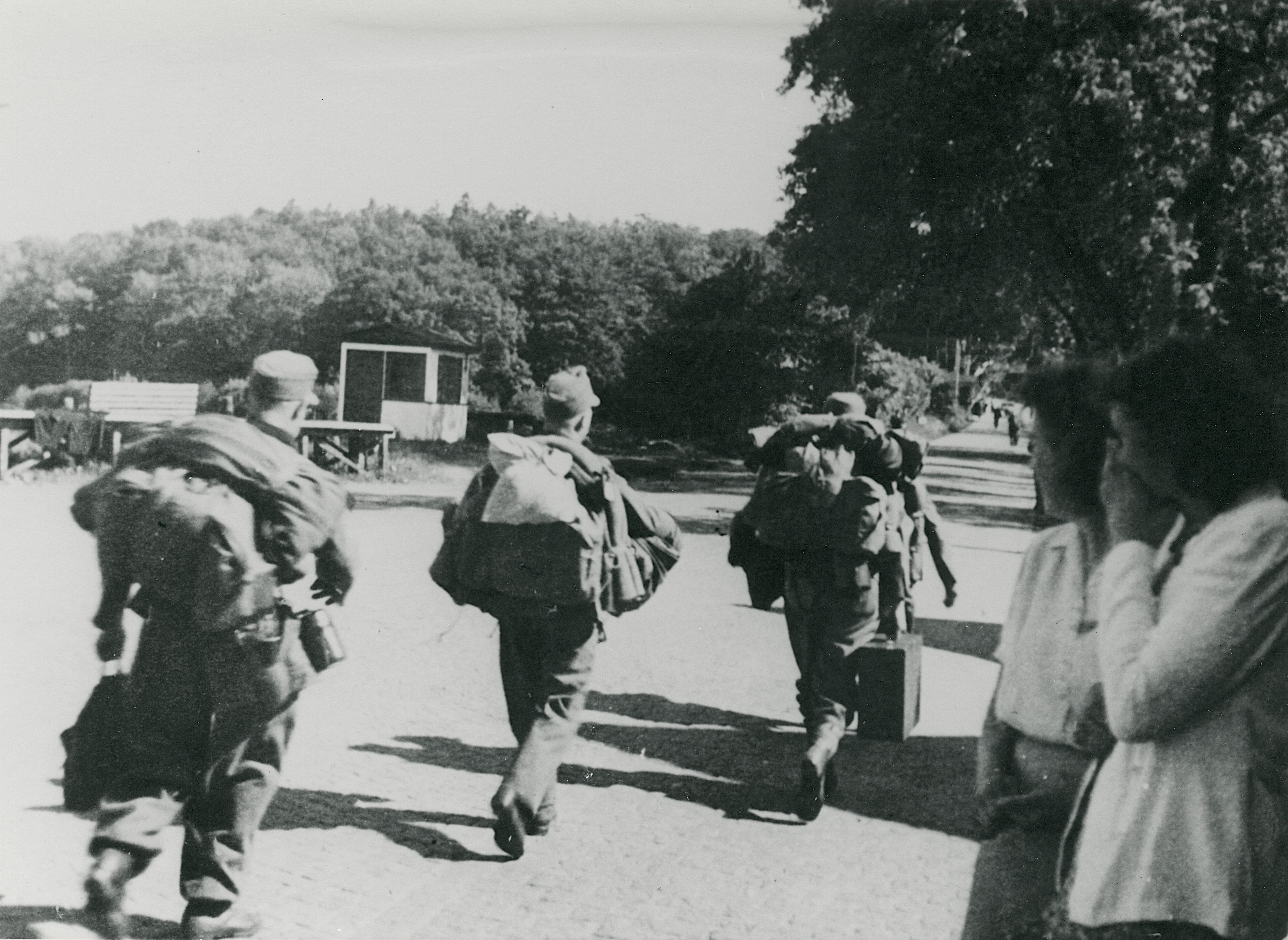 Maskingenkendt tekst fra fotokuvert: Tyske soldater på vej hjem. Kruså.