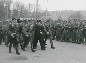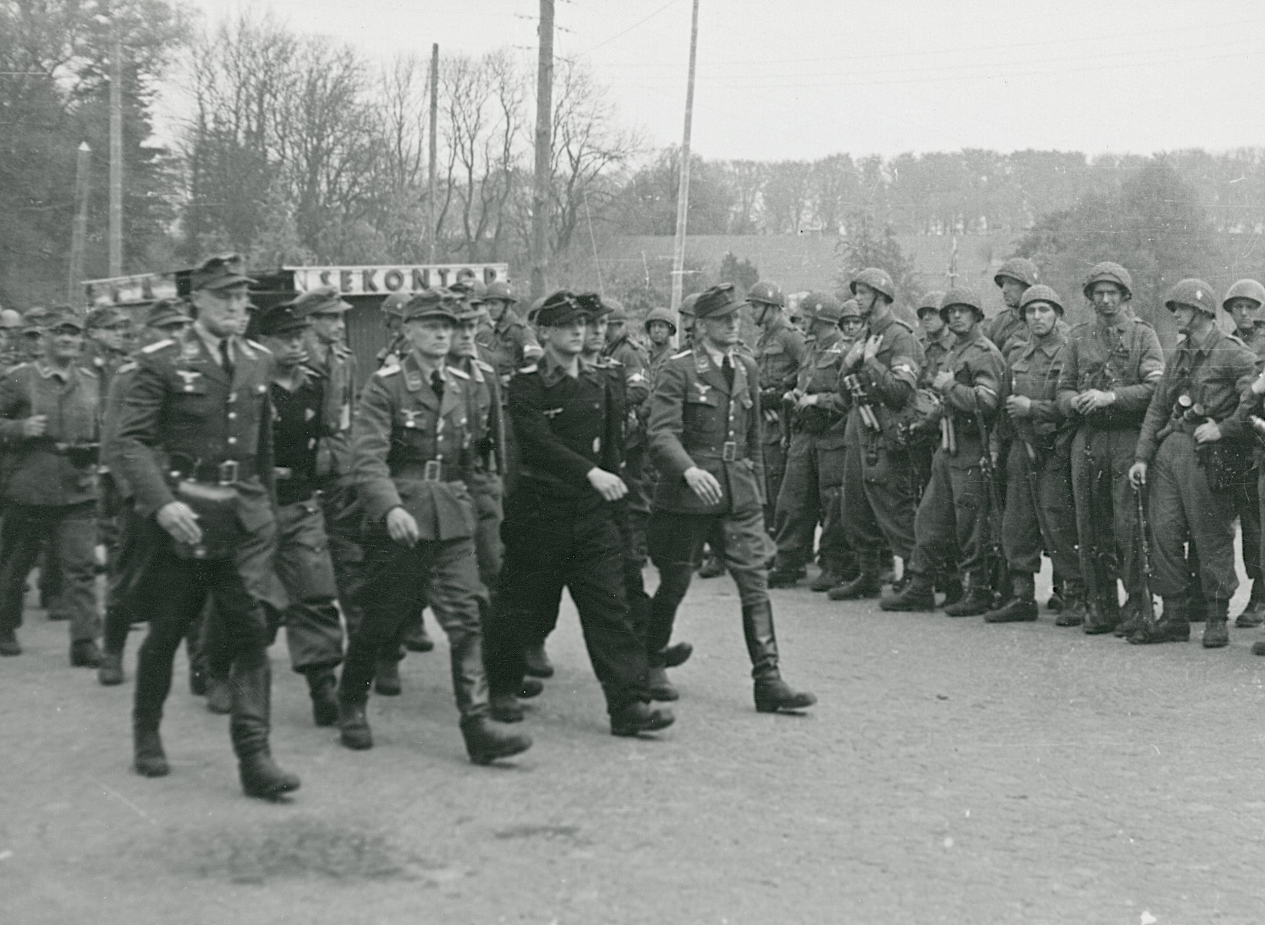 Maskingenkendt tekst fra fotokuvert: Tyske soldater på vej ud af Danmark ved grænsen.