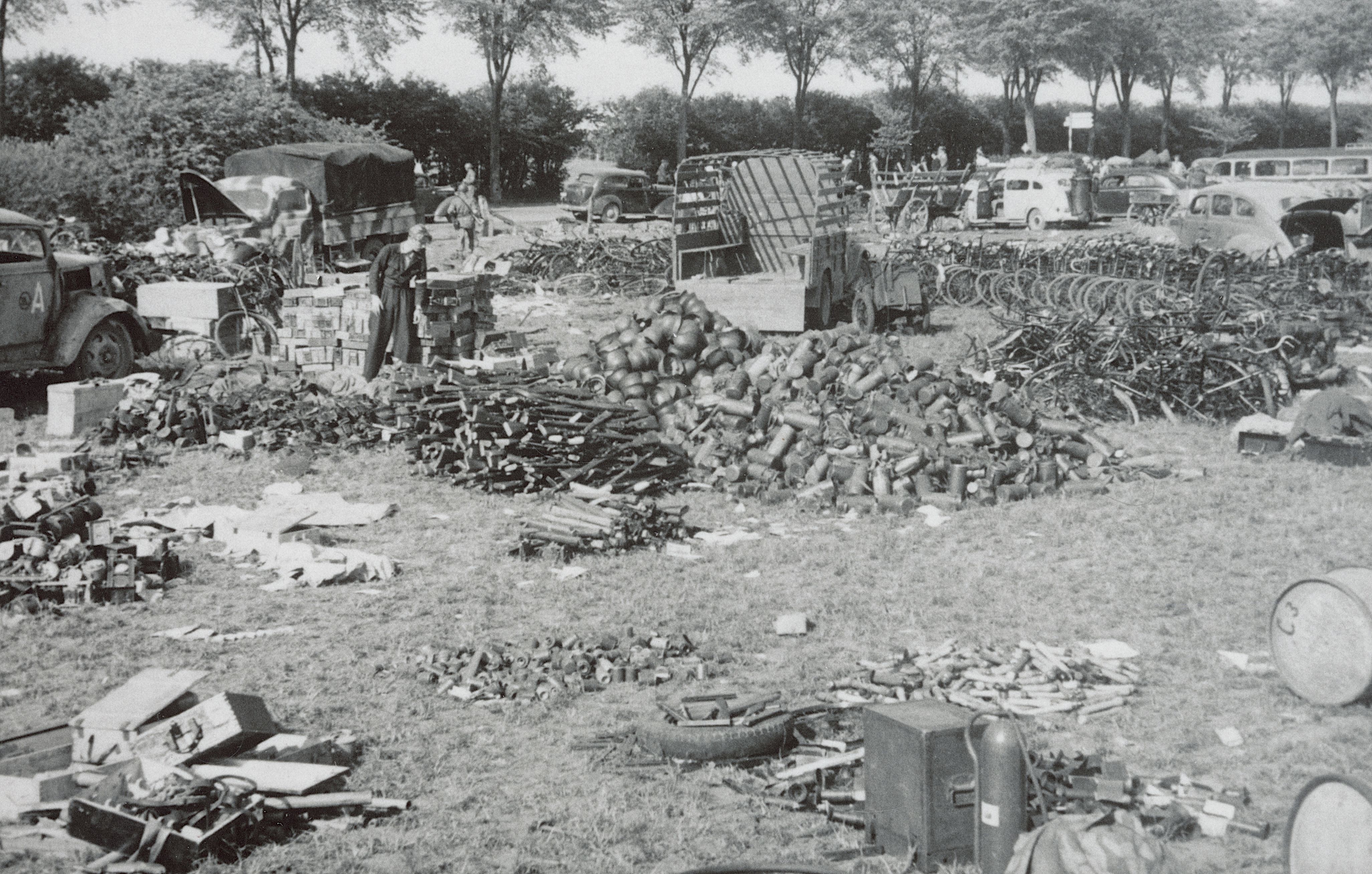 Maskingenkendt tekst fra fotokuvert: Tyske soldater blev frataget materiel ved grænsen i Sønderjylland.