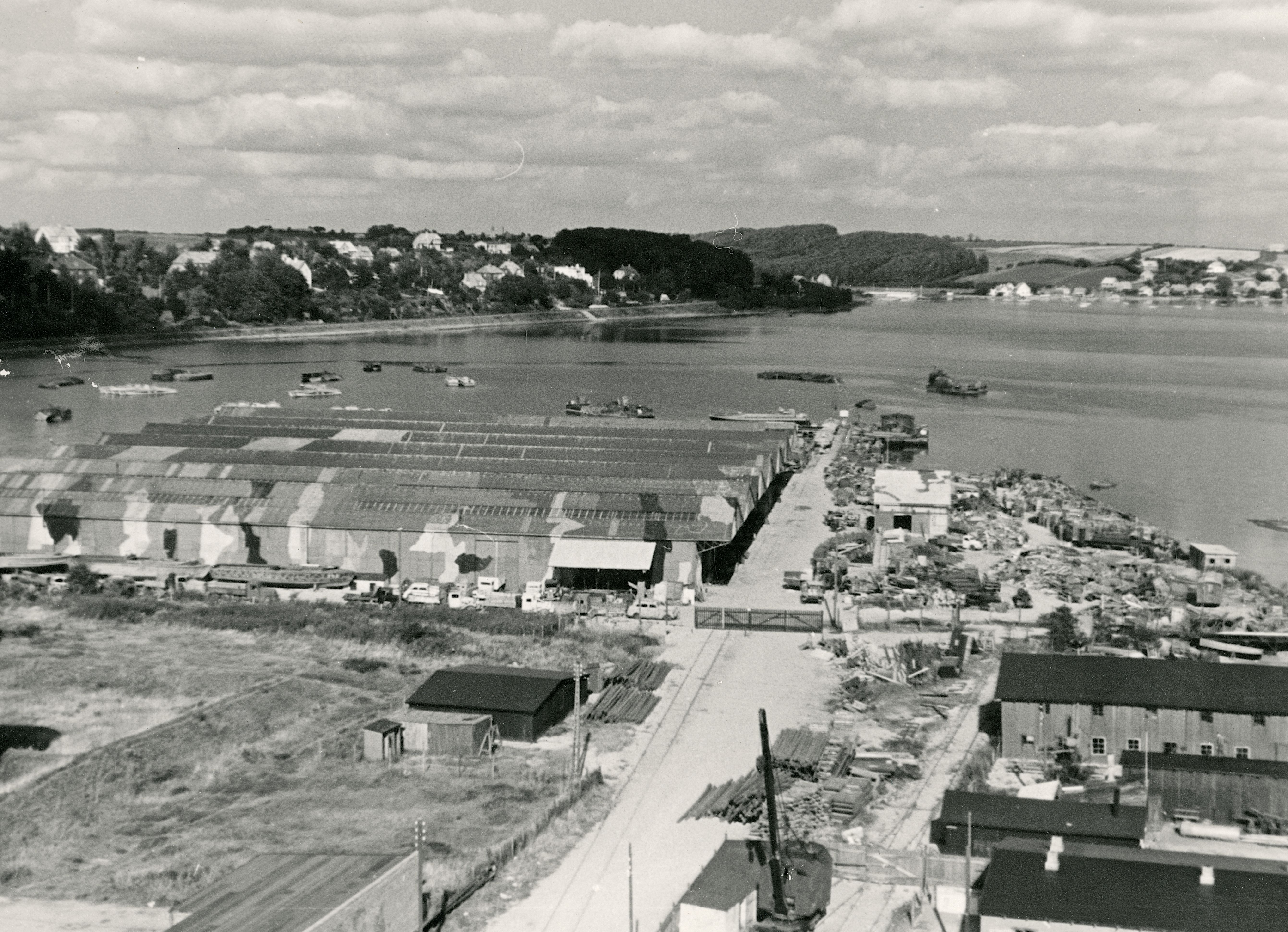 Maskingenkendt tekst fra fotokuvert: Det senere parkkommando i Kolding, hvor alle de tyske militære efterladenskaber fra hele Sydjylland samledes.