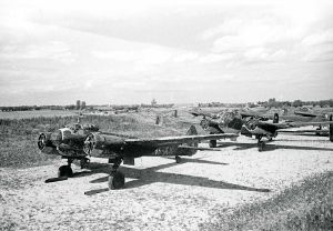 Maskingenkendt tekst fra fotokuvert: Beldring flyveplads besat med tyske fly.