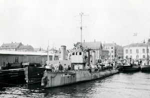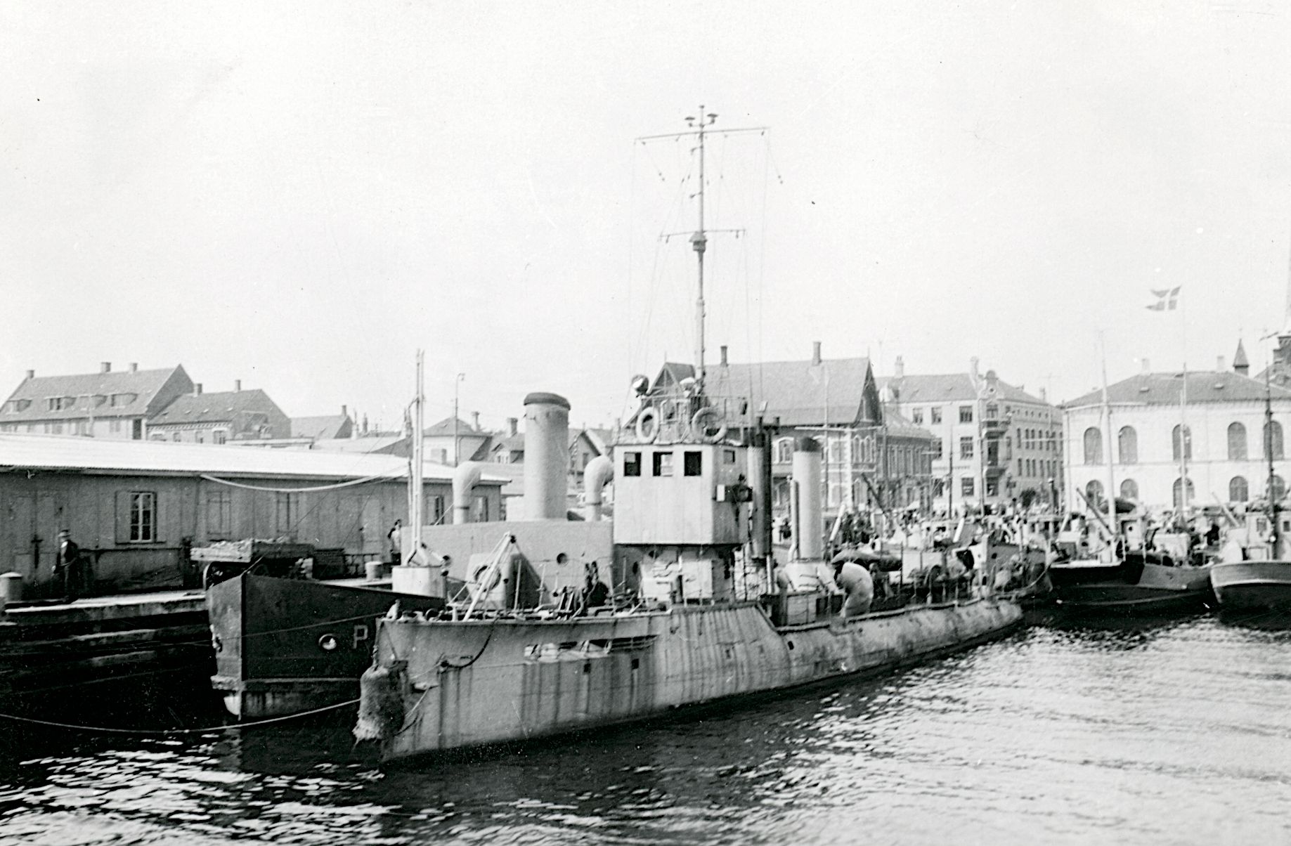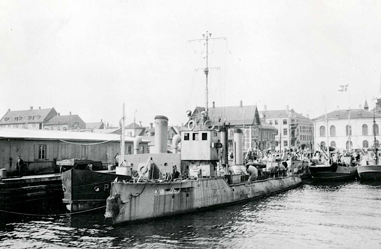 Maskingenkendt tekst fra fotokuvert: Danske krigsskibe i Nyborg havn reddet fra Tyskland.