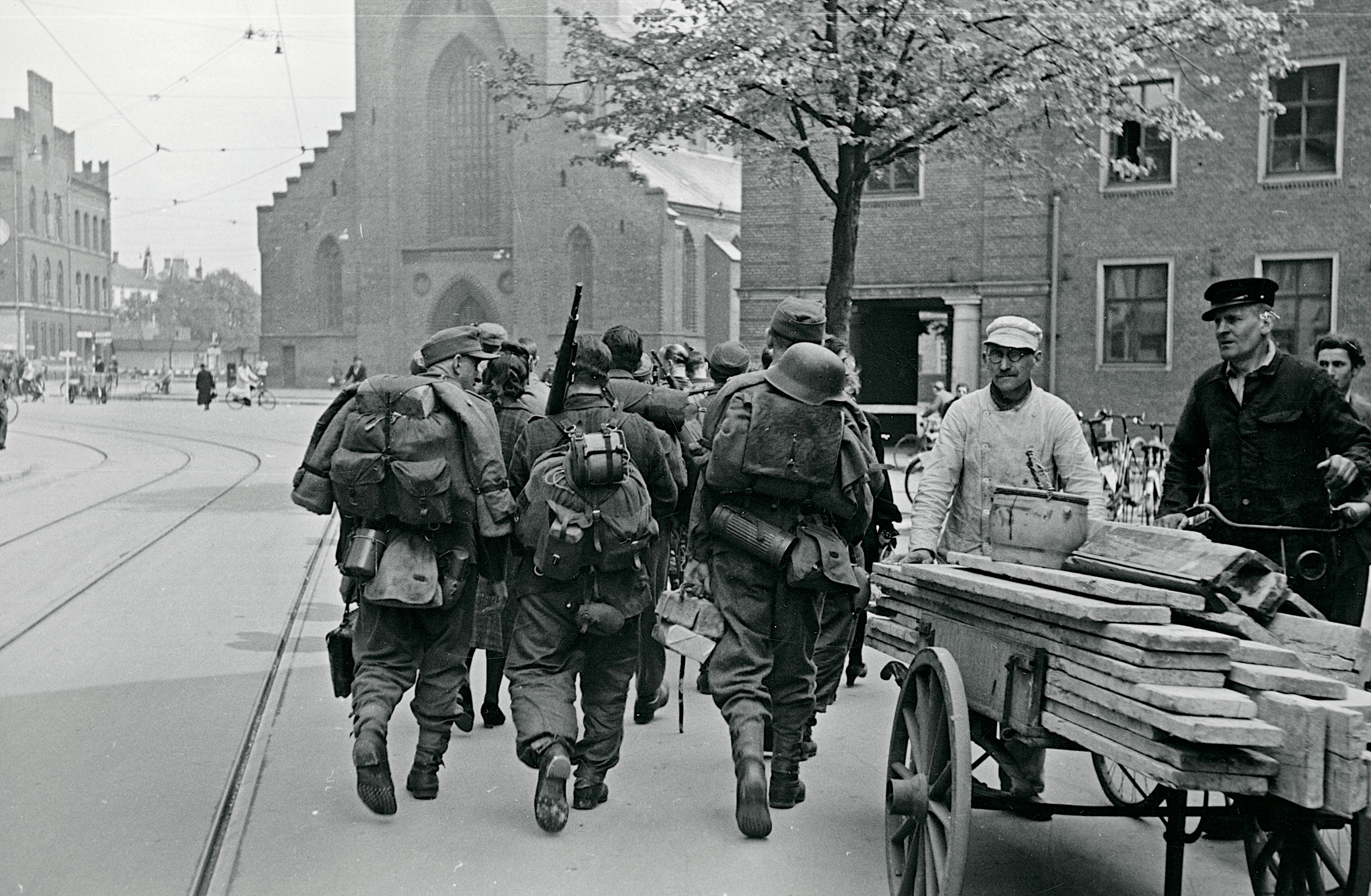 De tyske tropper drager ud af landet efter kapitulationen.