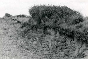 Maskingenkendt tekst fra fotokuvert: Gedser Odde. Dette smukt beliggende, højtliggende punkt skændede tyskerne også. Lige bag den høje lerklint, der var mere end faldefærdig, gravede tyskerne forsvarsstillinger.