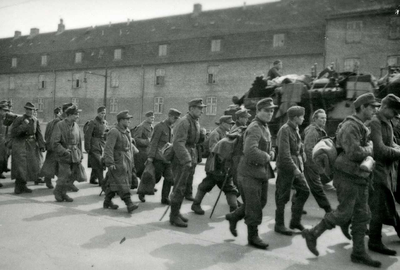 Maskingenkendt tekst fra fotokuvert: Værnemagten begiver sig på vej hjem.