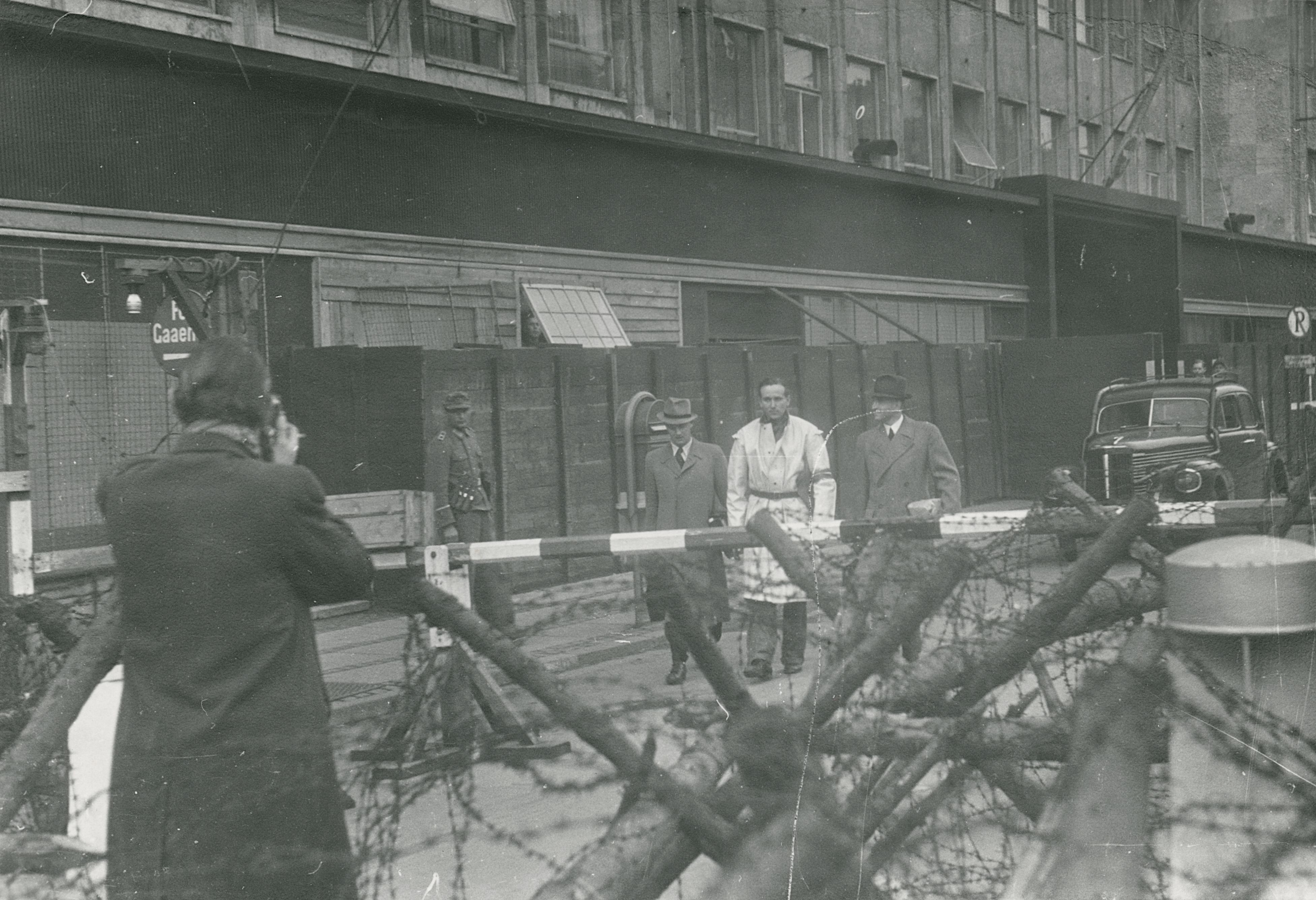 Maskingenkendt tekst fra fotokuvert: Dr. Verner Best føres fra Dagmarhus.