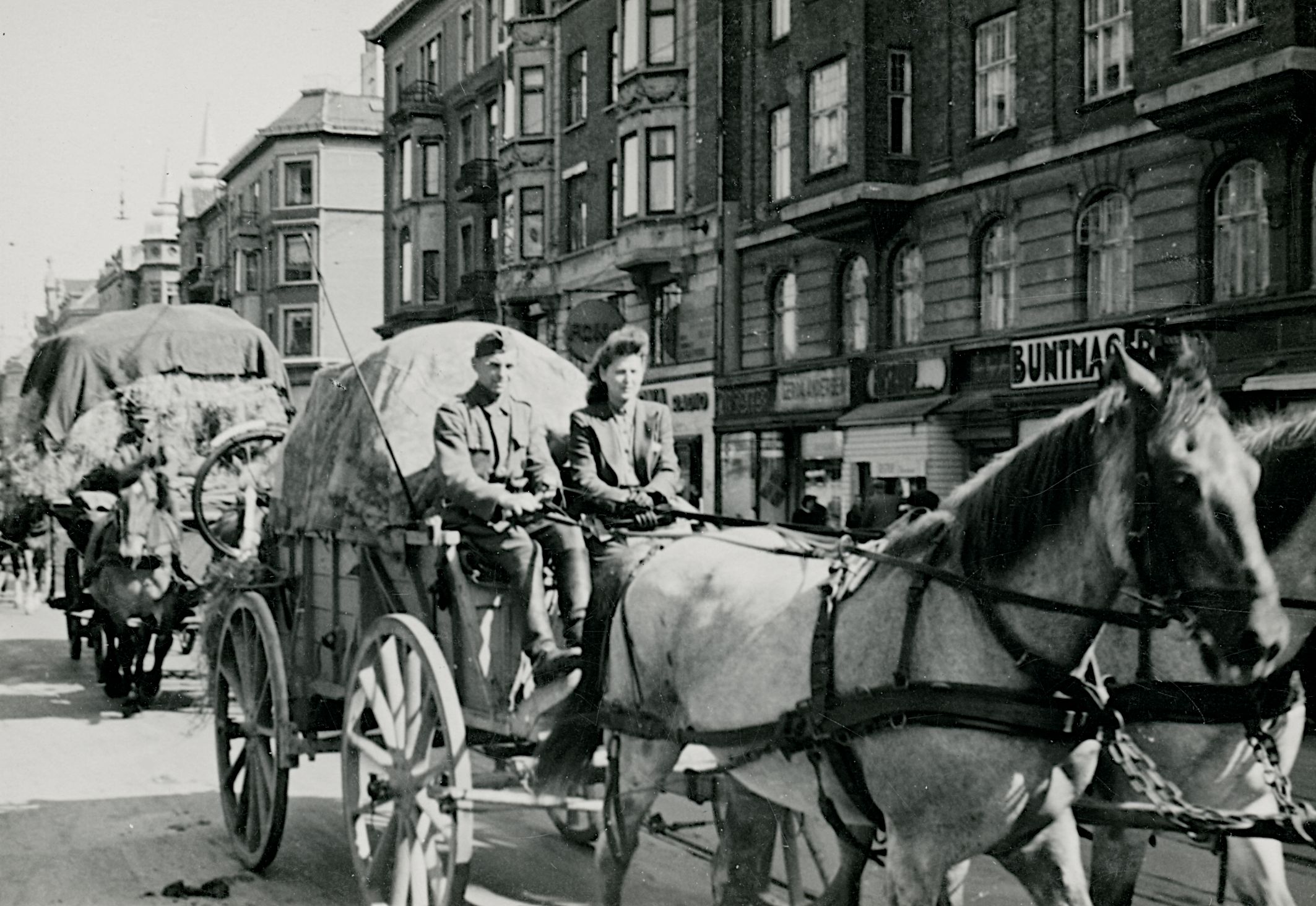Maskingenkendt tekst fra fotokuvert: Her på Østerbrdgade v. I. E. Ohlesensgade (o. nr. 90).