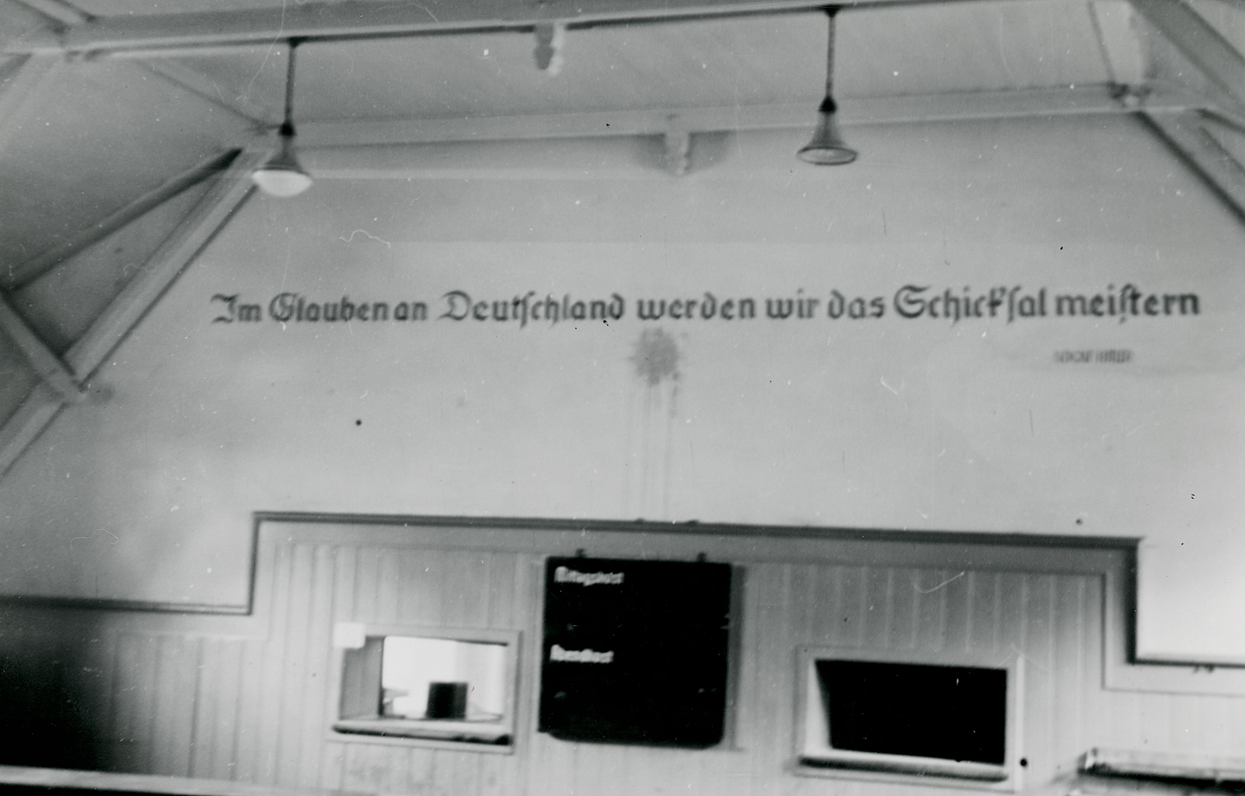 Maskingenkendt tekst fra fotokuvert: Husarkasernen, Østerbrogade 28, Kbhvn. Spisesalen på kasernen.