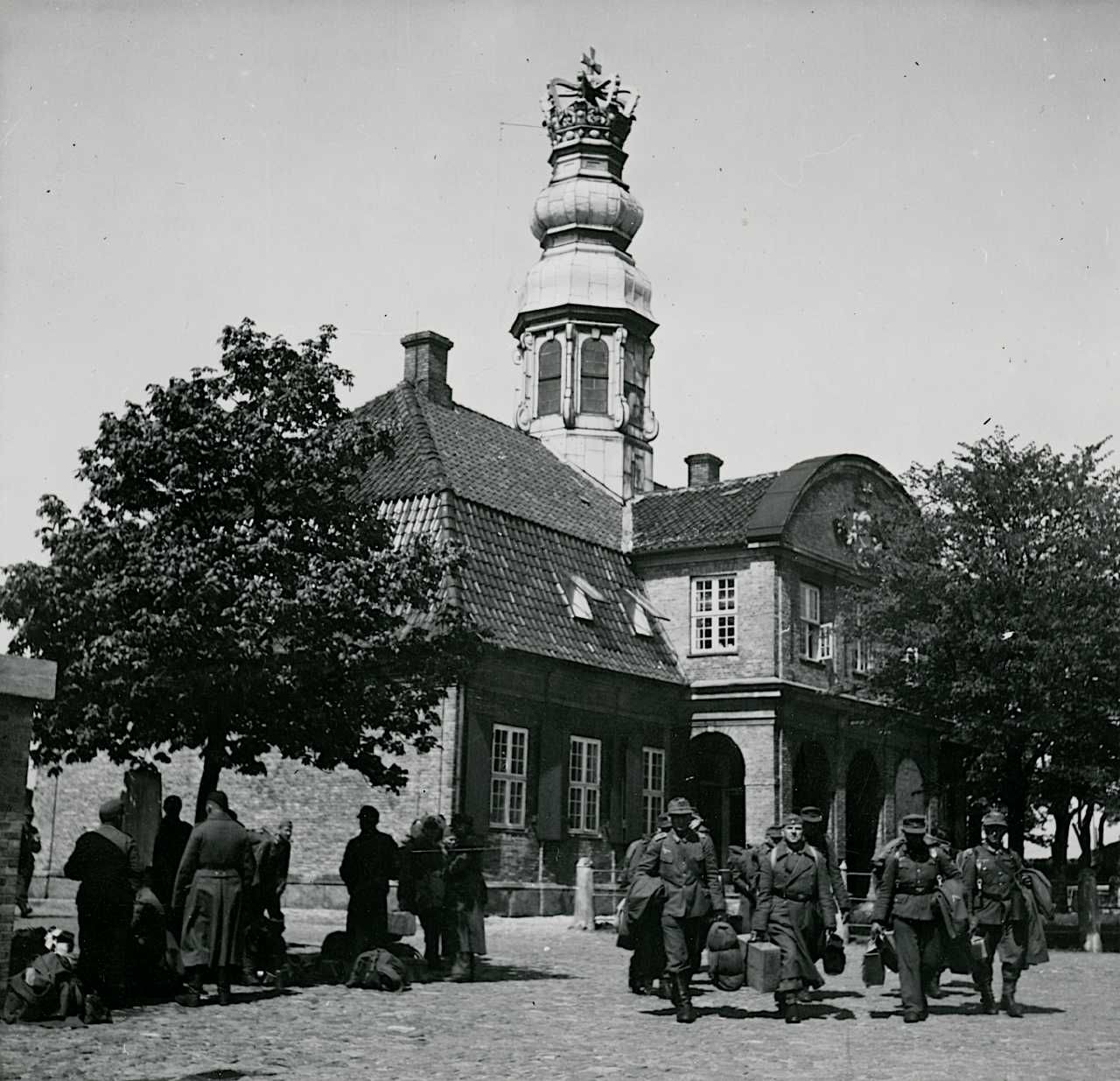 Maskingenkendt tekst fra fotokuvert: København 10 Maj 1945 Tyskerne forlader flådens leje, Holmen.