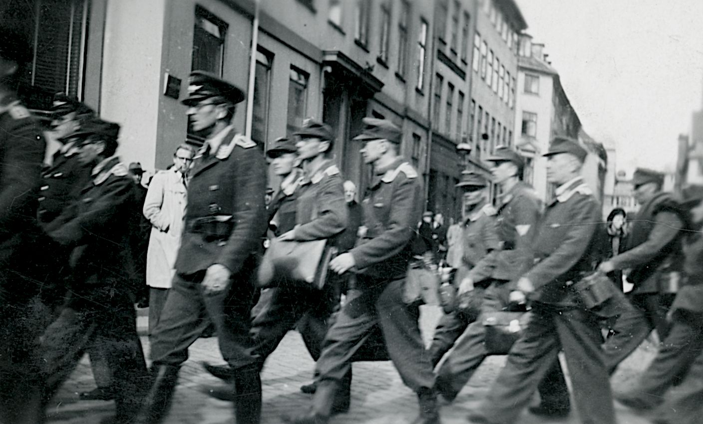 Maskingenkendt tekst fra fotokuvert: Tyske Soldater på hjemrejse, efter Kapitalationen.