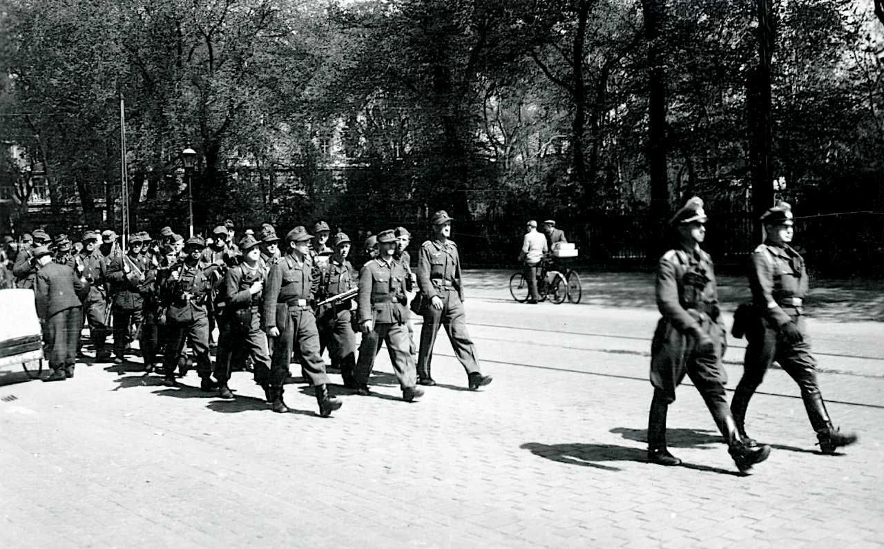 Maskingenkendt tekst fra fotokuvert: København. Tyske soldater drager hjem