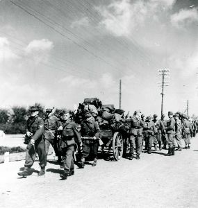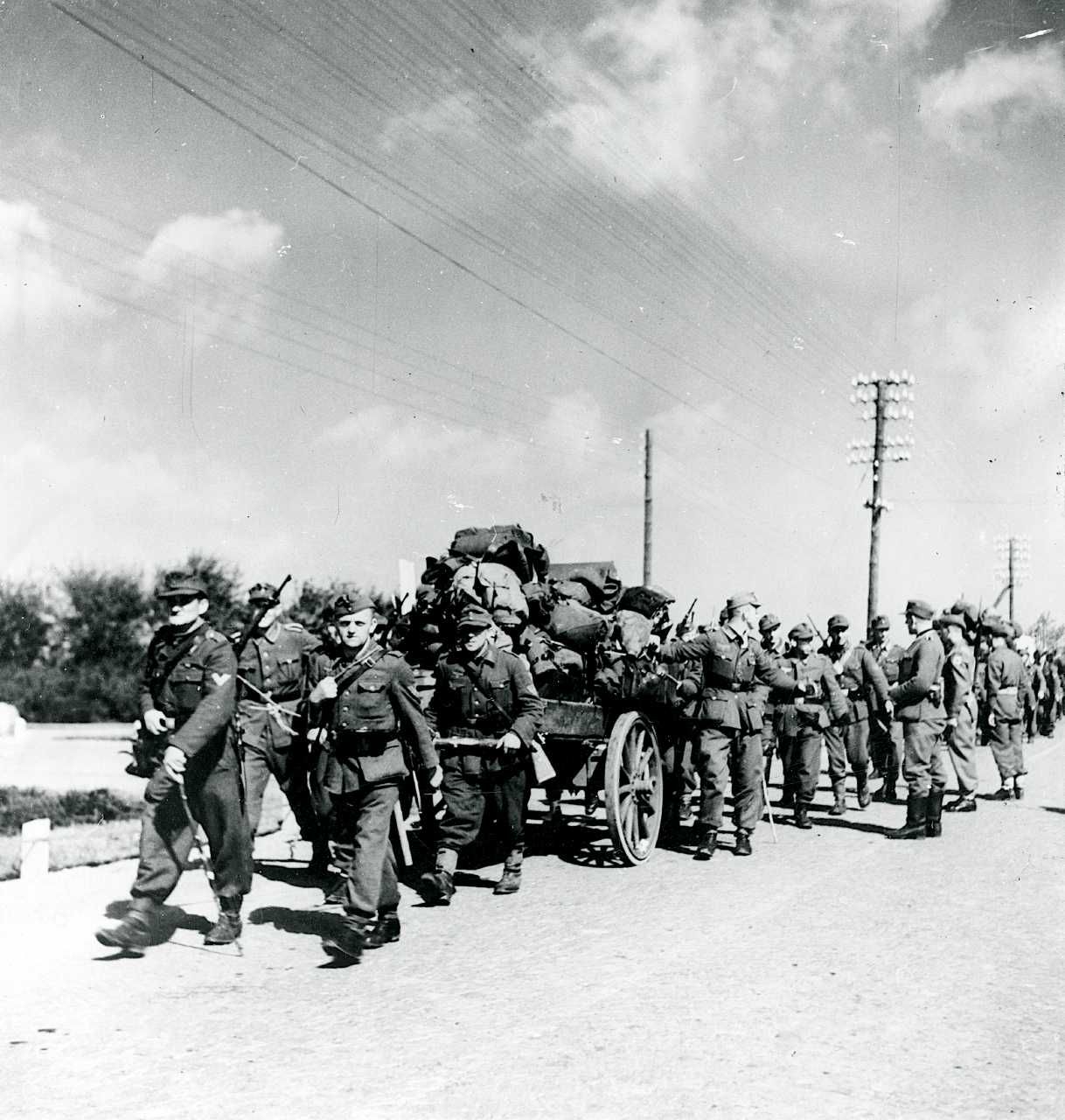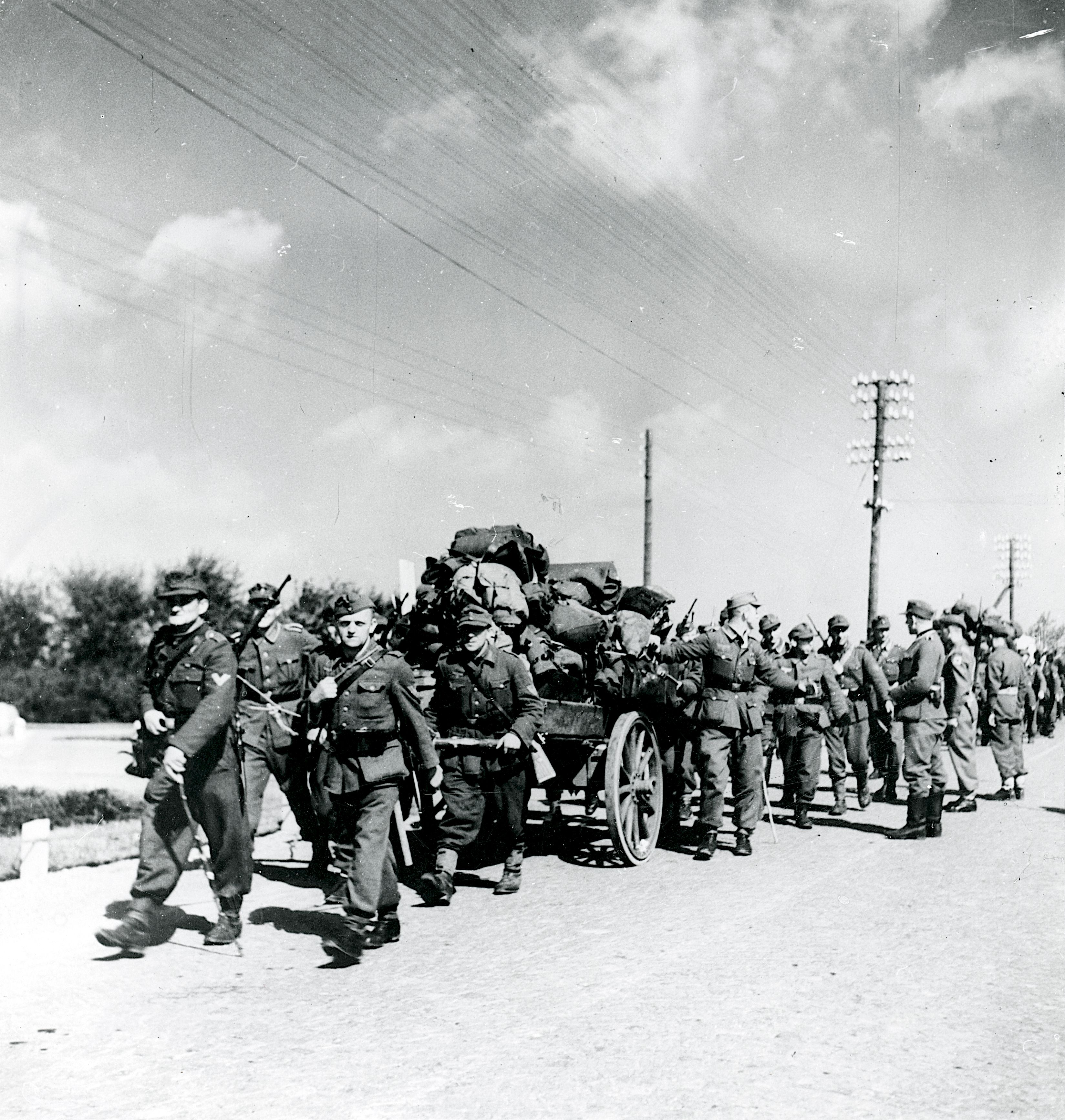 Maskingenkendt tekst fra fotokuvert: Tyske soldater på vej til Tyskland efter kapitulationen.