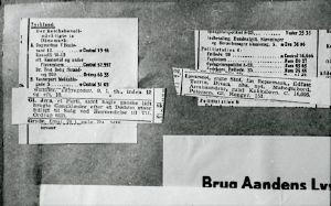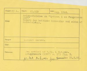 Maskingenkendt tekst fra fotokuvert: Avismeddelelse om "Mytteri i en Fangetransport", bemærk den kritiske kommentar ved siden meddelelsen.