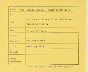 Maskingenkendt tekst fra fotokuvert: Berlingske Tidende 8. og 23/5 1944