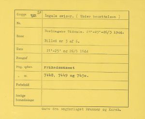 Maskingenkendt tekst fra fotokuvert: Berlingske Tidende. 21-25-26/5 1944