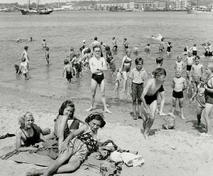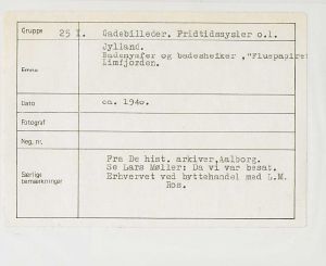 Maskingenkendt tekst fra fotokuvert: Jylland. Badenymfer og badesheiker, "Fluepapiret" Limfjorden.
