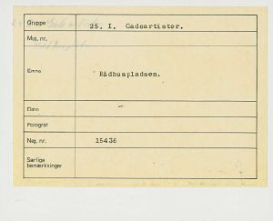 Maskingenkendt tekst fra fotokuvert: Rådhuspladsen.