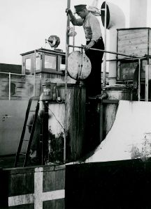 Maskingenkendt tekst fra fotokuvert: Hønsfærgen med gengas.