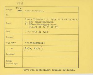 Maskingenkendt tekst fra fotokuvert: Fyens Tidende 21/2 1945 kl 1.00 Odense.