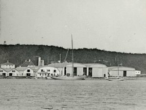 Maskingenkendt tekst fra fotokuvert: Vebers Skibsværft i Svendborg.