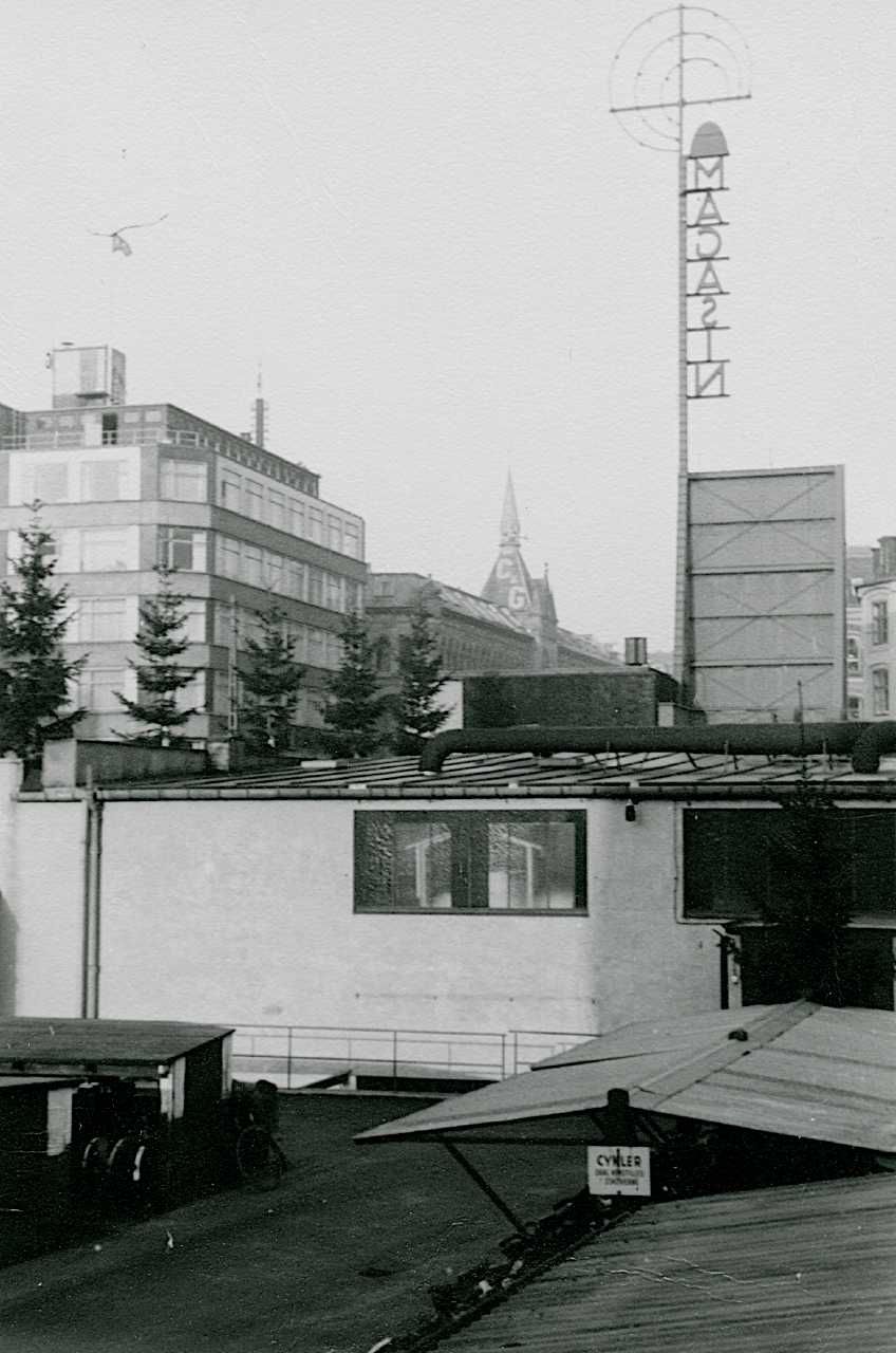 Maskingenkendt tekst fra fotokuvert: Magasin du Nord mod Bremerholm med juleudsmykning.
