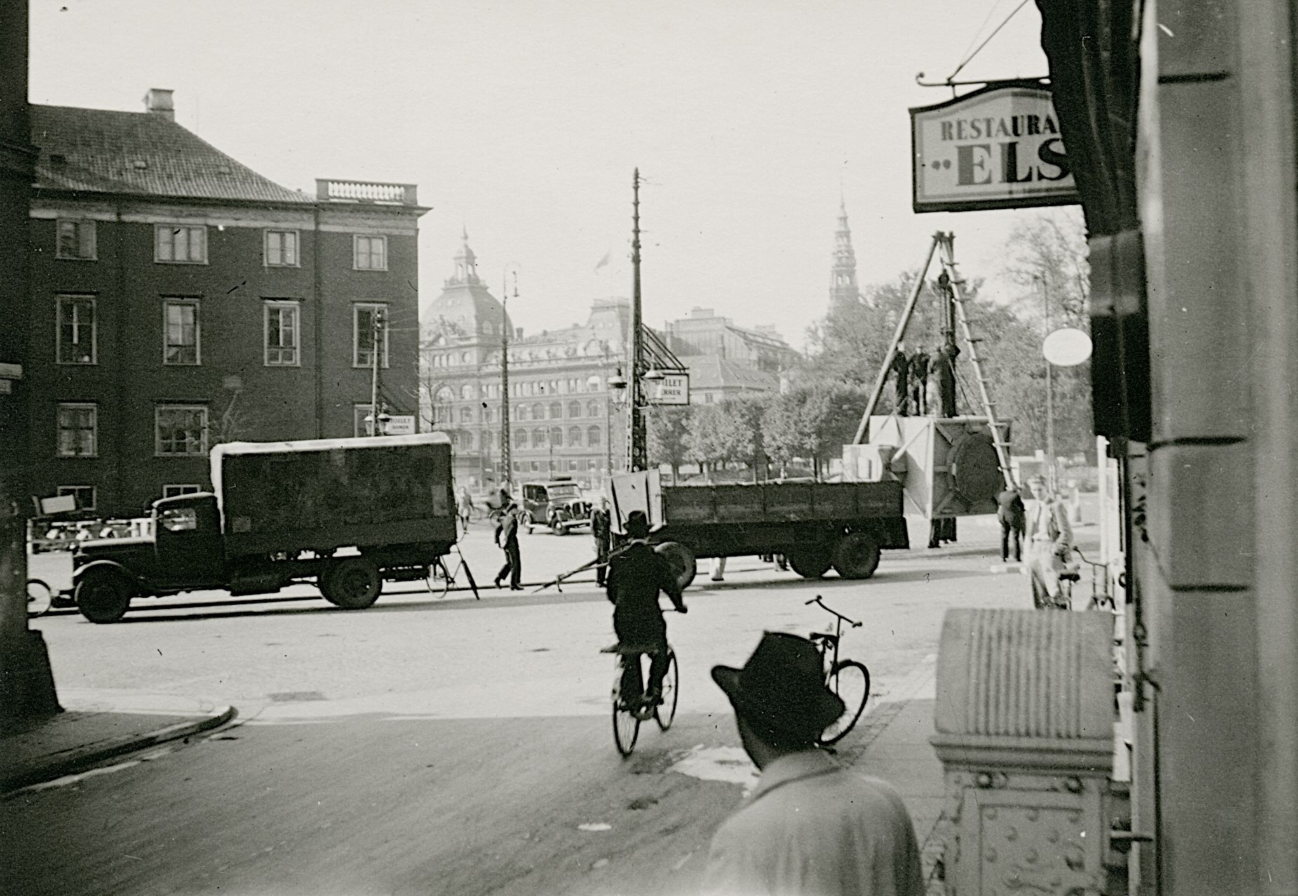 Maskingenkendt tekst fra fotokuvert: En situation udfor St. Strandstræde og Nyhavn.