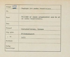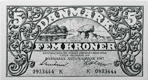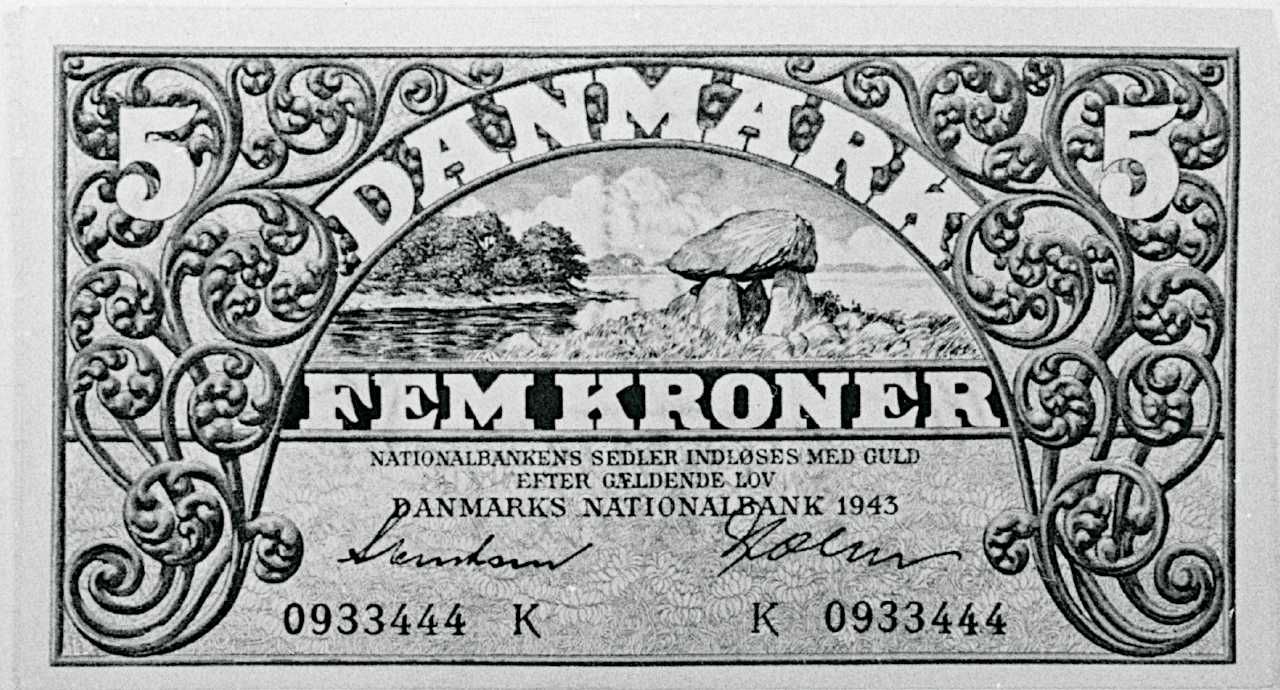 Maskingenkendt tekst fra fotokuvert: Billede af dansk pengeseddel som de så ud under besættelsen.