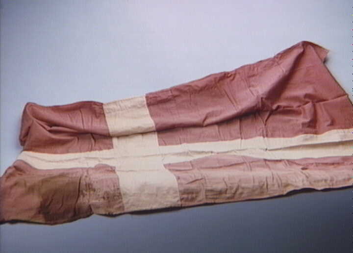 Dannebrogsflag fra arbejdslejr ”Jessen II”, hvor 110 danske politifolk var interneret