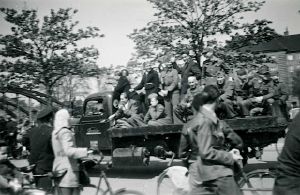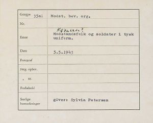 Maskingenkendt tekst fra fotokuvert: Modstandsfolk og soldater i tysk uniform.