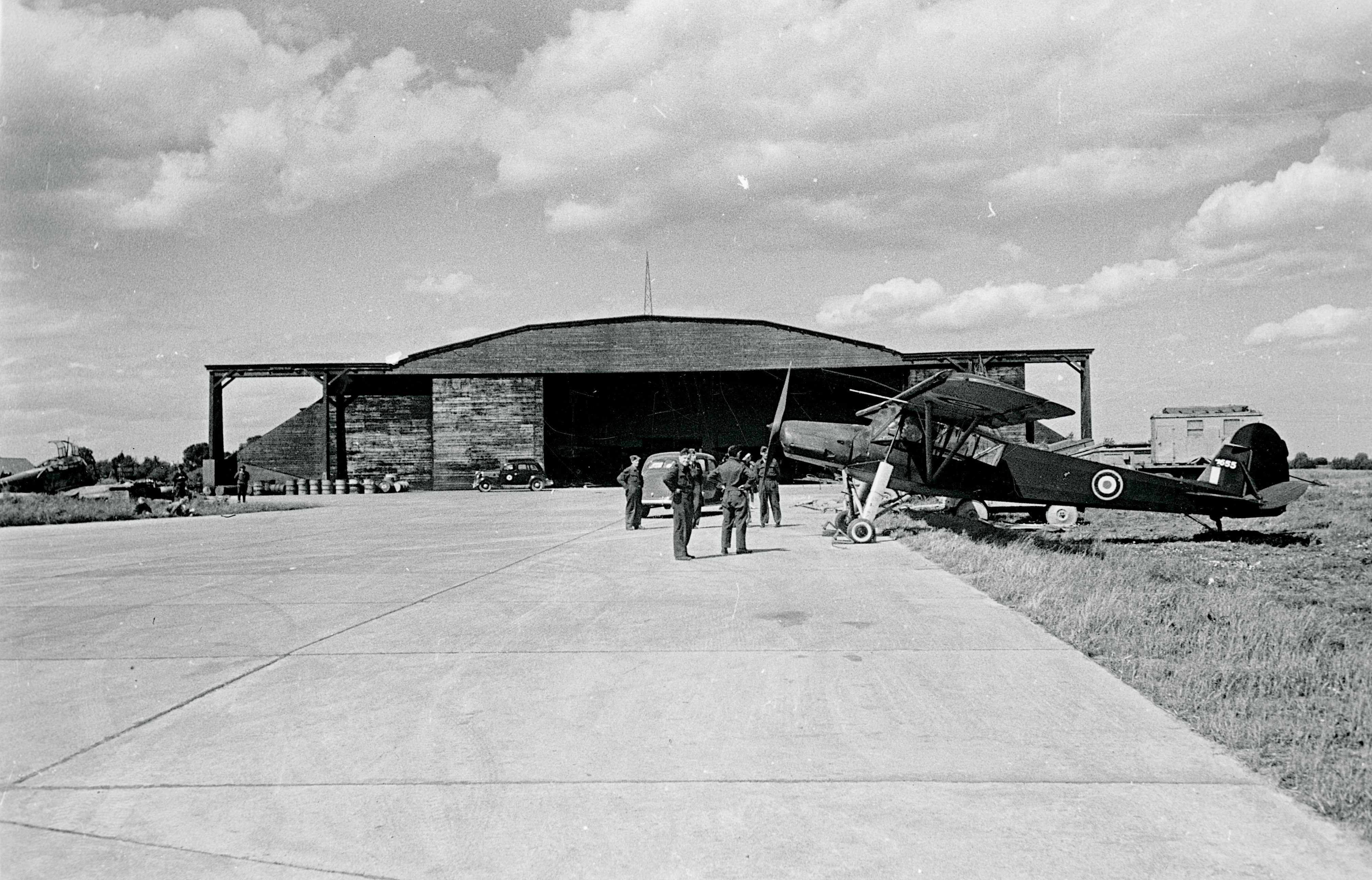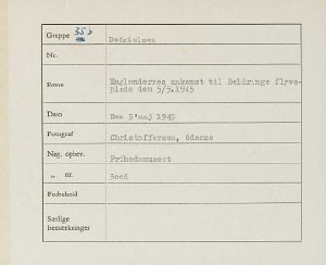 Maskingenkendt tekst fra fotokuvert: Englændernes ankomst til Beldringe flyveplads d. 5/5. 1945