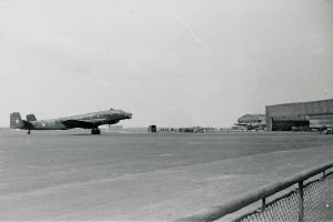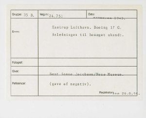 Maskingenkendt tekst fra fotokuvert: Kastrup Lufthavn. Boeing 17 G. Anledningen til besøget ukendt.
