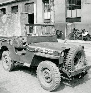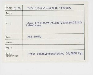 Maskingenkendt tekst fra fotokuvert: Jeep (Military Police). Sandsynligvis København.