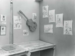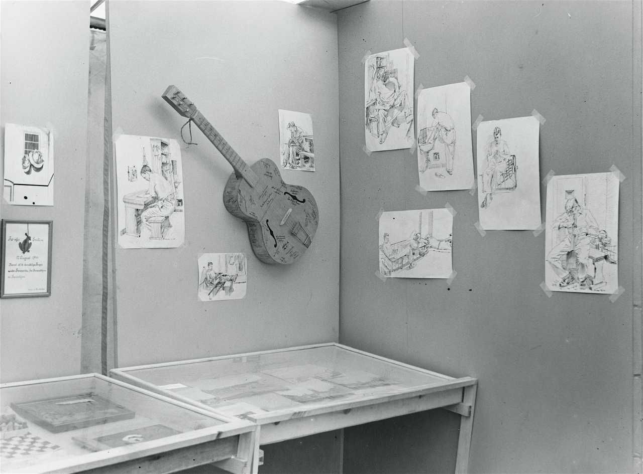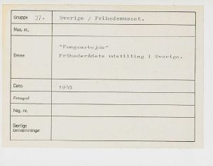 Maskingenkendt tekst fra fotokuvert: Fangearbejde Frihedsrådets udstilling i Sverige.